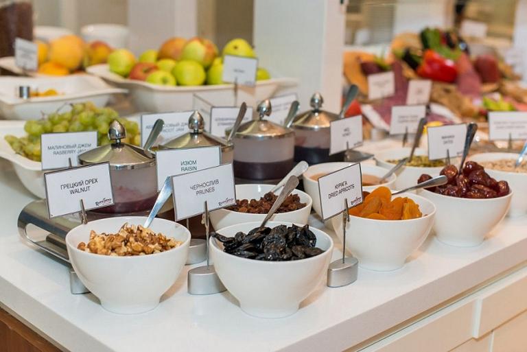 Питание Гостей отеля проходит в ресторане «The Grilled» на 1-м этаже корпуса Modern. В ресторане ежедневно накрывается завтрак, обед и ужин европейской кухни в формате «Шведский стол» (при заполнении отеля более 25 человек).