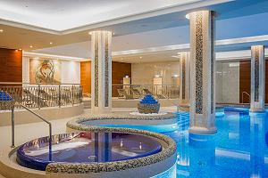 СПА-центр расположен в 10-этажном корпусе. Здесь для отдыхающих работают 7 роскошных процедурных кабинетов, VIP-комната с приватной парной, джакузи и комнатой отдыха, большой бассейн с гидромассажем, детский бассейн, термальная зона (две финские сауны, римская парная, турецкий хамам, соляной грот), просторная релаксационная комната, зона отдыха с подогреваемыми шезлонгами, фитнес-зал, СПА-бар.