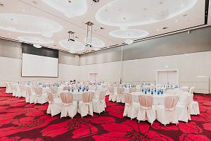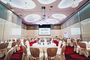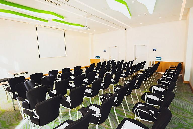 Бизнес-центр - большой конференц-зал площадью 272 кв.м, 7 мультифункциональных залов, 6 из которых соединяются и транформируются в три больших, залы оборудованы высококачественным аудио- и видеооборудованием.